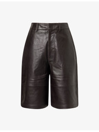 PRODUCT DETAILS - The Frankie Shop leather shorts - 100% leather - Button, hook-and-eye and zip-fly fastening at front - Relaxed fit, mid-rise, belt loops, side slip pockets, patch pockets at back - Specialist leather clean - Made in India - True to size - Size small: rise 13.5in / 34cm, inside leg 12in / 30.5cm, leg opening 28in / 71cm - Model is 5ft 10in/1.78m and wears a size small - Midweight, non-stretch Ref: R04546993
