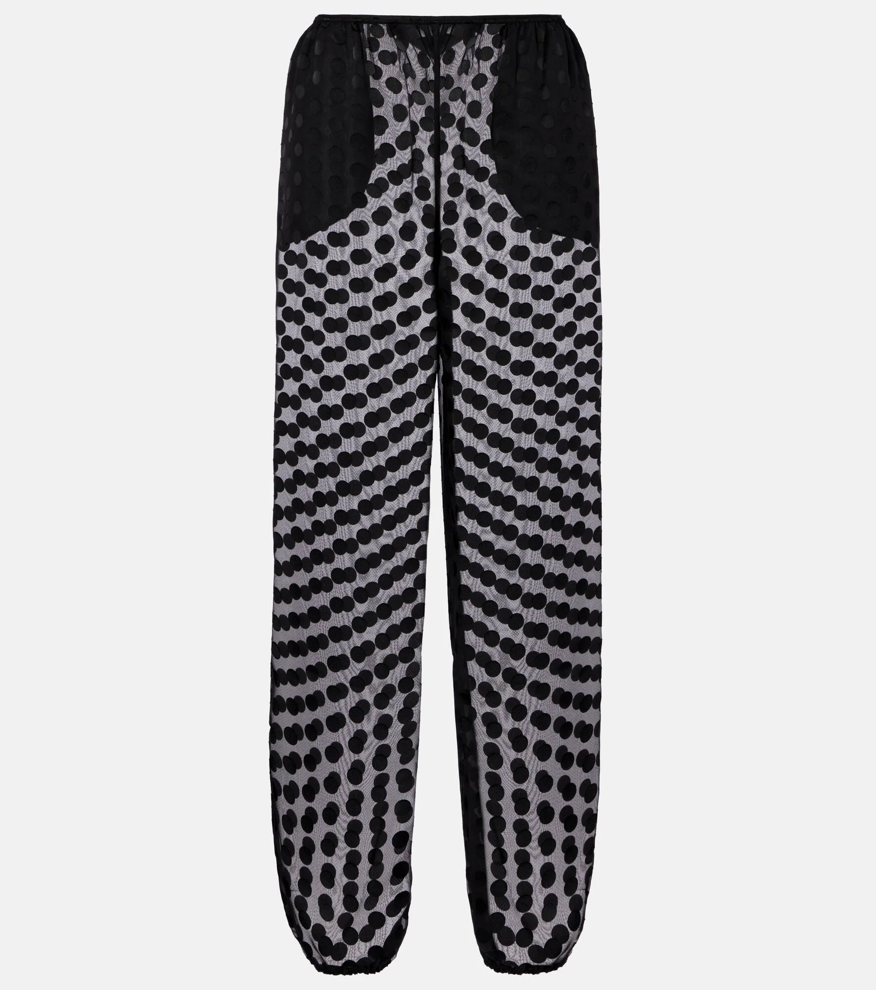 The Frankie Shop has captured the hearts of fashion insiders with their low-effort, high-impact essentials. In a sheer fabric, the Orissa pants feature an allover polka-dot motif and a wide-leg silhouette for elevated comfort. Product Details - Material: 61% polyester, 39% viscose - Care instructions: dry clean - Made in China - Color: black - Designer color name: Black - Elasticated waistband - Pockets: side slit pockets - Hem: elasticated - Item number: P01132050 Size & Fit - True to size - Sheer - Elasticated waist - Non-stretchy fabric - Wide-leg - The model seen in the picture is 178cm-5'10" and wearing a size XS