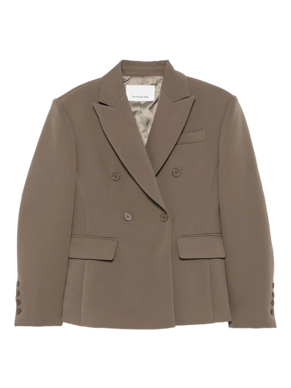 peak-lapel double-breasted blazer Highlights - Moss green - Double-breasted fastening - Darted waist - Peak lapels - Buttoned cuffs - Long sleeves Imported Composition Polyester 88%, Acetate 12% SIZE & FIT Model measurements Height 5 ft 11 in(1.8 m) Bust/Chest 32.67 in(83 cm) Hips 36.22 in(92 cm) Waist 24.4 in(62 cm) Washing instructions Machine Wash