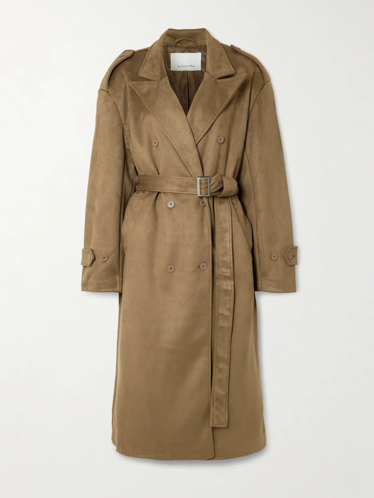 The Frankie Shop's 'Pembroke' trench gives the illusion that it's crafted from suede, thanks to its brushed and supple handle. It's cut for a relaxed fit with a double-breasted front and peak lapels, and is defined by a detachable belt. The cuffs have adjustable tabs, too.