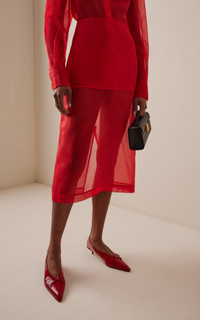 The Frankie Shop has garnered a cult following for its wardrobe staples that are classic but never boring. Founded by Gaelle Drevet, it's become our go-to for unfussy, on-trend basics that won't break the bank. Slotting into both the ‘Tomato’ and ‘sheer’ trends, this midi skirt is made from a lightweight mesh lined for discretion. The flattering high waist works well with cropped tops and relaxed T-shirts. PRODUCT DETAILS - Pre-Fall '25 - Concealed zip fastening - Composition: 55% silk, 45% polyamide - Dry clean - Imported