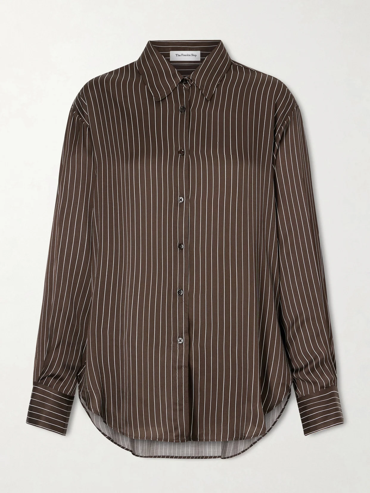 The Frankie Shop's ‘Peri' shirt reimagines a classic striped staple with the label's signature restraint. Cut from fluid satin, it has a relaxed silhouette with elongated cuffs and a softly curved hem that enhances the drape. Tuck it loosely into tailored pants or layer it under a sweater vest.