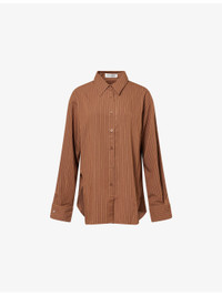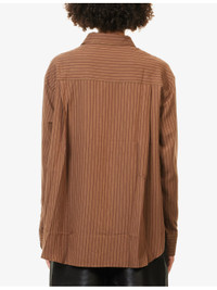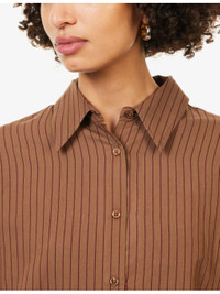 PRODUCT DETAILS - The Frankie Shop woven shirt - 89% lyocell, 11% polyamide - Button fastening at front - Relaxed fit, pointed collar, long sleeves, buttoned cuffs, embroidered logo at cuff, all-over stripe pattern - Machine wash cold - Made in Morocco - True to size - Size small: length 29.5in / 75cm - Model is 5ft 10in/1.78m and wears a size small - Lightweight, non-stretch Ref: R04546951