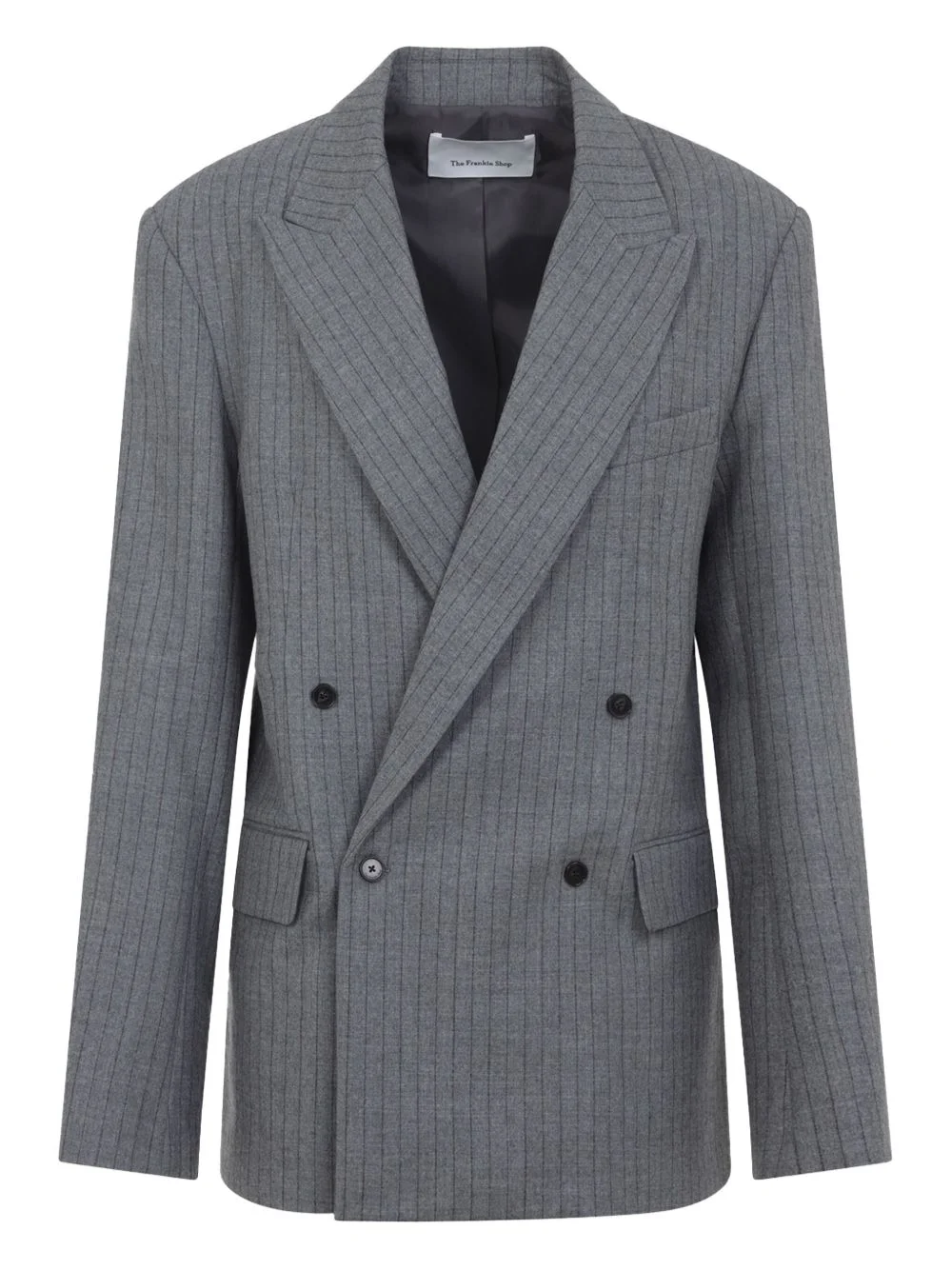 pinstripe double-breasted jacket Highlights - Grey - Pinstripe pattern - Double-breasted - Peak lapels - Button fastening - Flap pockets Imported Composition Wool 96%, Elastane 4% Washing instructions Read Manufacturer Guidelines
