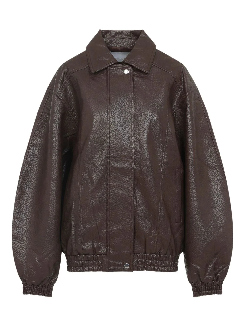 faux-leather bomber jacket Highlights - Brown - Textured finish - Point collar - Button fastening - Elasticated hem - Long sleeves Imported Composition Polyurethane 100% Washing instructions Read Manufacturer Guidelines
