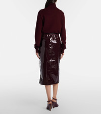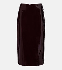 The Frankie Shop has captured the hearts of fashion insiders with their low-effort, high-impact essentials. Made from glossy vinyl burgundy fabric, the Samantha skirt is a pencil style defined by a zipped side slit. Product Details - Material: 60% polyurethane, 40% polyester - Care instructions: do not wash - Made in India - Color: burgundy - Designer color name: Burgundy - Lining: 100% polyester - Closure: zipped side - Item number: P01132053 Size & Fit - Fits small to size - we recommend trying one size larger - Non-stretchy fabric - The model seen in the picture is 178cm-5'10" and wearing a size S