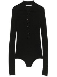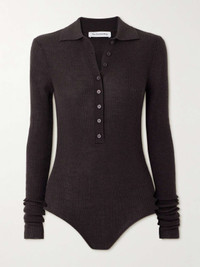 EDITORS'NOTES The Frankie Shop's 'Solana' bodysuit is made from wool, silk and cashmere-blend, so you can imagine just how soft it'll feel against your skin. It has a ribbed finish to emphasize the slim fit and chic pointed collar. Leave the first few buttons undone to show off a stack of longer necklaces. SIZE & FIT Model measurements: - Fits true to size, take your normal size - Designed for a slim fit - Full brief coverage - Lightweight, stretchy fabric - Model is 177cm/ 5'10" and is wearing a size Small - Bust: 85cm/ 33.5" - Waist: 65cm/ 25.5" - Hip: 91cm/ 36" DETAILS & CARE - Dark-brown wool, silk and cashmere-blend - Button fastenings along front - 70% wool, 20% silk, 10% cashmere - Dry clean