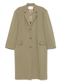 Tribeca trench coat Highlights - Olive green - Front button fastening - Two front flap pockets - Central rear vent - Shoulder pads Imported Composition Outer: Viscose 82%, Virgin Wool 15%, Elastane 3% Lining: Polyester 100% SIZE & FIT Model measurements Height 5 ft 10 in(1.78 m) Bust/Chest 33.46 in(85 cm) Hips 36.22 in(92 cm) Waist 23.22 in(59 cm) FittingInformation Designed for an oversized fit, offering additional room throughout The internal shoulder pads offer a structured shape Made from a midweight fabric
