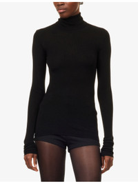 PRODUCT DETAILS - The Frankie Shop wool and silk jumper - 75% wool, 25% silk - Slim fit, turtleneck, long sleeves, all-over fine-knit pattern, ribbed - Hand wash cold - True to size - Model is 5ft 10in/1.78m and wears a size small - Lightweight, stretchy Ref: R04547015