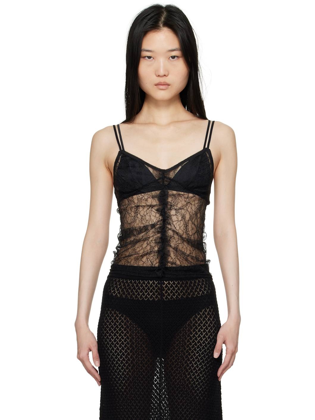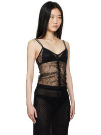 Sheer nylon lace tank top. · Sweetheart neck · Gathering at front · Elasticized spaghetti shoulder straps Supplier color: Black 100% polyamide. Made in China 251364F111001