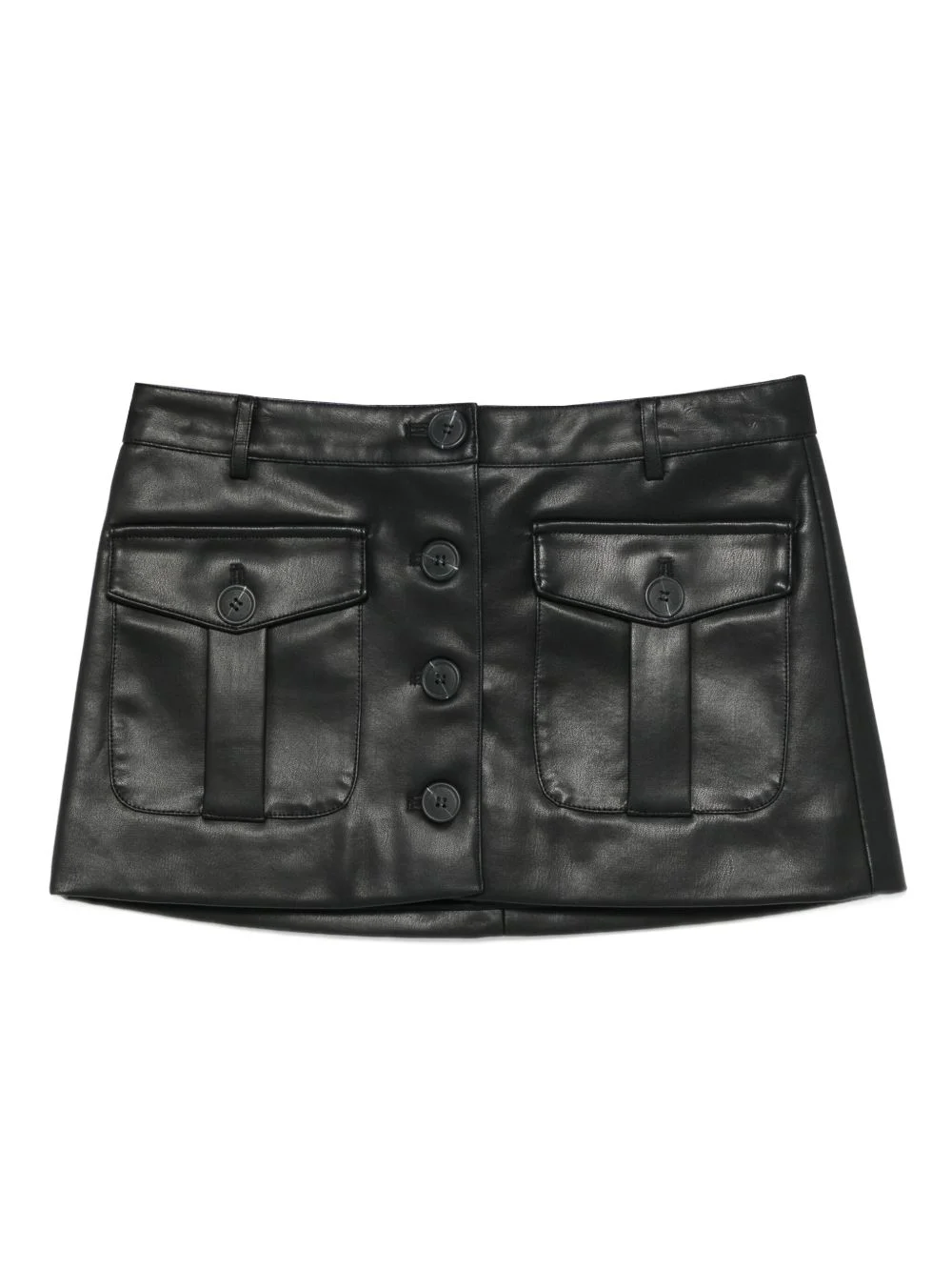 buttoned mini skirt Highlights Imported Composition Recycled Leather 52%, Polyurethane 28%, Polyester 20% SIZE & FIT Model measurements Height 5 ft 10 in(1.77 m) Bust/Chest 32.28 in(82 cm) Hips 35.03 in(89 cm) Waist 25.19 in(64 cm)