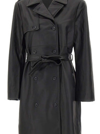 Brooklyn Trench double-breasted jacket Highlights - Black - Peak lapels - Shoulder epaulettes - Double-breasted closure - Belt - Side pockets Imported Composition Recycled Leather 52%, Polyurethane 28%, Polyester 20% Washing instructions Read Manufacturer Guidelines