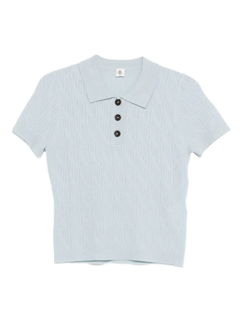 Como cable buttoned polo shirt Highlights - Light blue - Cable knit - Button fastening - Short sleeves - Polo collar Imported Composition Wool 95%, Cashmere 5% Washing instructions Hand Wash