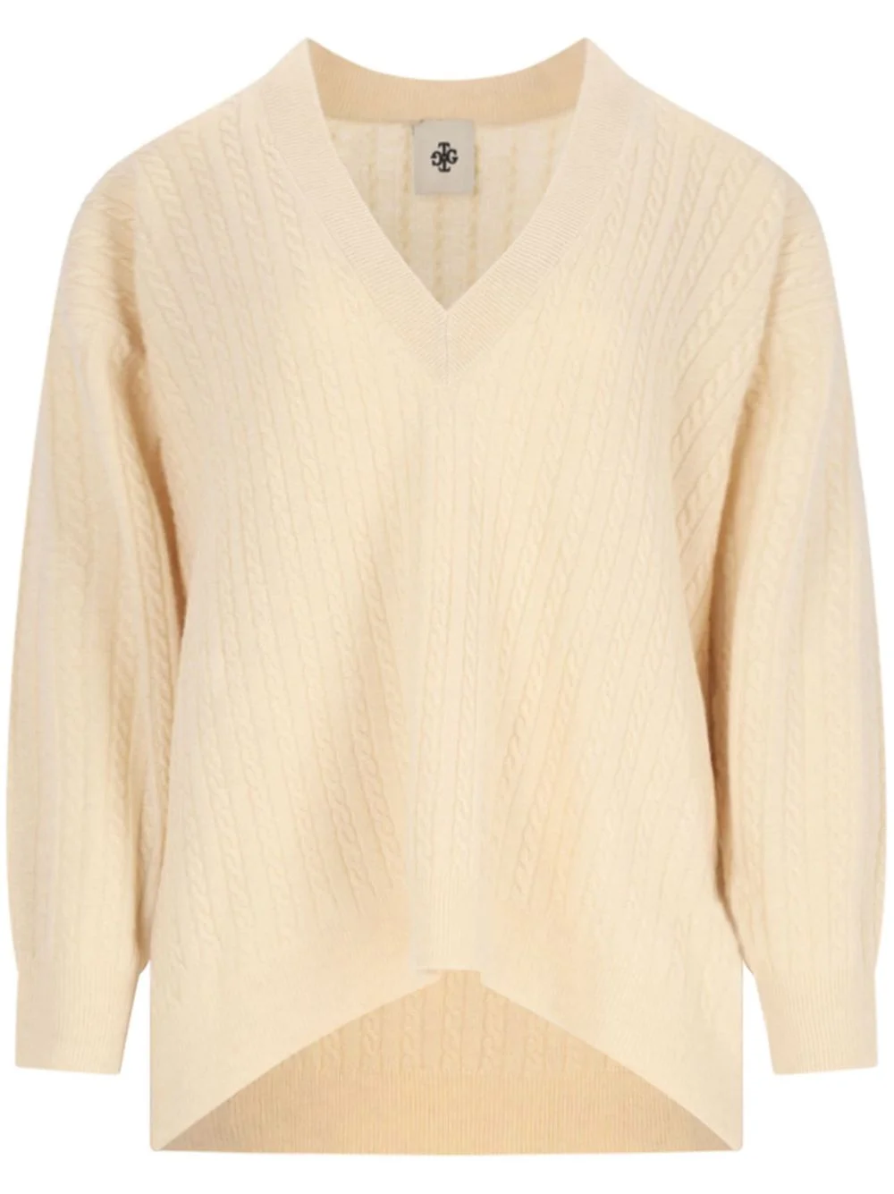 Como sweater Highlights - Sand beige - Wool-cashmere blend - Cable knit - V-neck - Drop shoulder - Long sleeves - Ribbed cuffs and hem Imported Composition Wool 95%, Cashmere 5% Washing instructions Read Manufacturer Guidelines