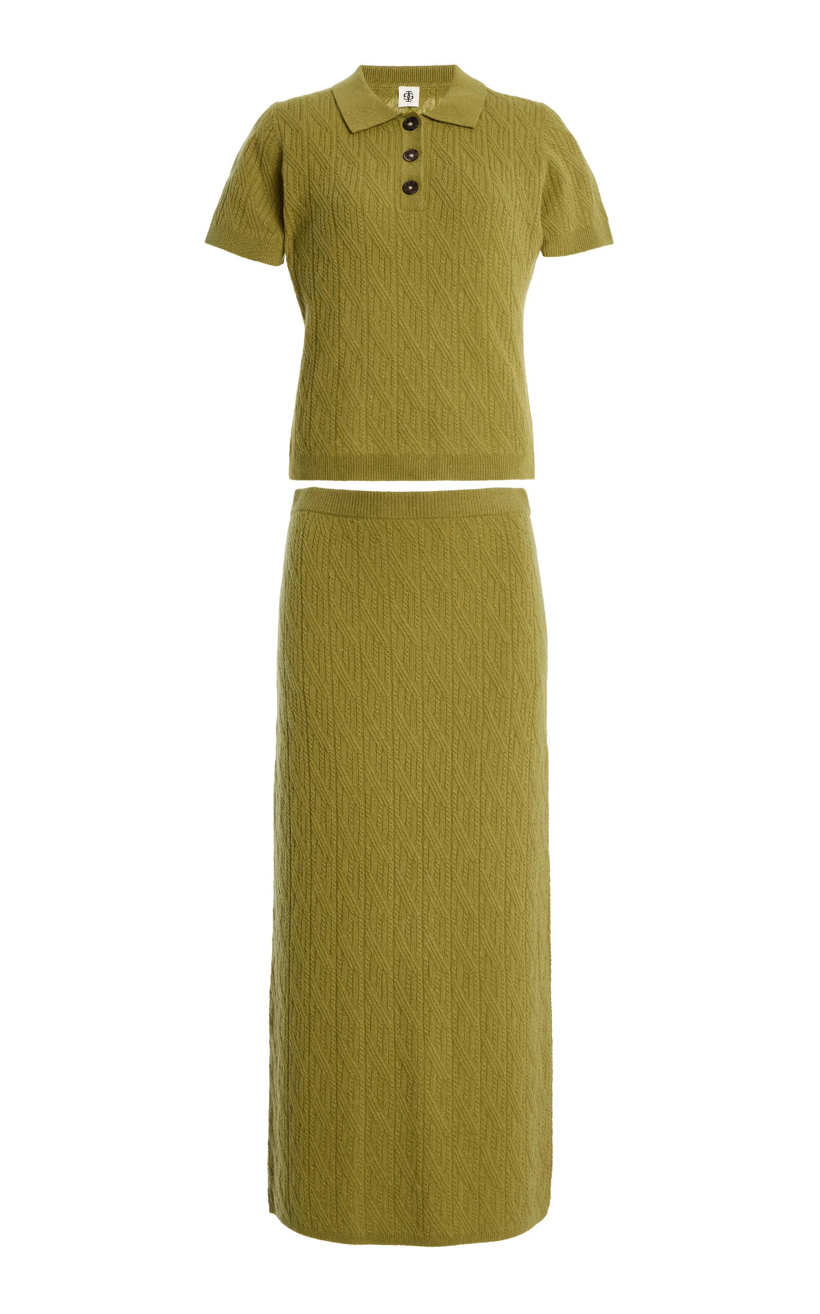 Founded by Sophia Roe and Charlotte Eskildsen, The Garment is inspired by timeless minimalism, crafting their coveted line with a seasonless approach that embraces craftsmanship and versatility over fleeting trends. The Como set features a polo and skirt crafted from a soft wool-cashmere blend. It offers a versatile look that can be styled together or apart. PRODUCT DETAILS - Resort '26 - Slip on - Composition: 95% wool, 5% cashmere - Designer color: Matcha - Dry clean - Imported