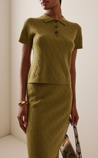 Exclusive Como Cable-Knit Wool-Cashmere Polo Set green