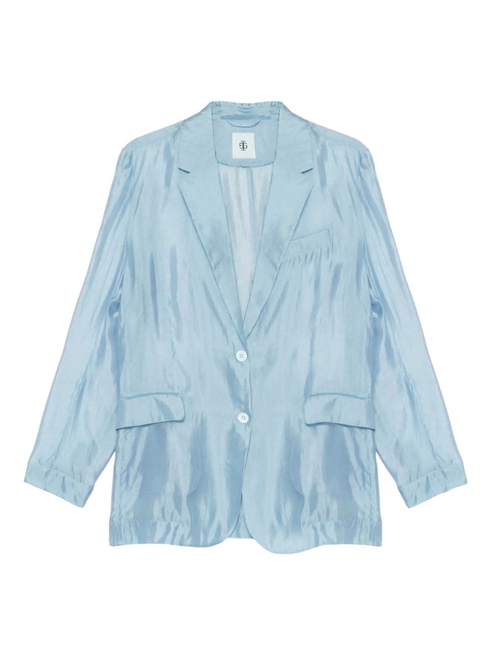 satin-finish blazer Highlights - Light blue - Front button fastening - Notch lapels - Chest welt pocket - Two front flap pockets Imported Composition Viscose 90%, Polyester 10%