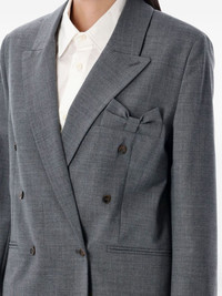 double-breasted bow-detail blazer Highlights - Grey - Double-breasted fastening - Bow detail pocket - Button cuffs - Welt pockets Imported Composition Outer: Polyester 53%, Wool 43%, Elastane 4% Lining: Viscose 100% Washing instructions Read Manufacturer Guidelines