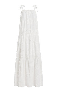 Founded by Sophia Roe and Charlotte Eskildsen, The Garment is inspired by timeless minimalism, crafting their coveted line with a seasonless approach that embraces craftsmanship and versatility over fleeting trends. Cut from airy organic cotton, the 'Jewell' dress billows to a maxi length, a design featuring textured embroidery and adjustable tie fastenings. PRODUCT DETAILS - Spring/Summer '25 - Slip on with tie fastenings - Composition: 100% Organic Cotton; Lining: 100% Polyester - Dry clean only - Imported SIZE & FIT - Our model is wearing a size UK 6 - Model is 5'11" with a 32" bust, 25" waist, and 35.5" hip - Designed for a relaxed fit
