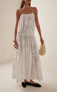 Jewell Embroidered Organic Cotton Maxi Dress white