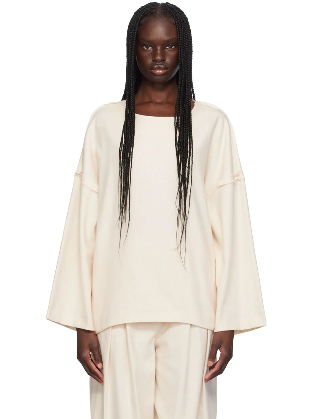 Cotton herringbone blouse. Inverted seams with frayed edges throughout. · Round neck · Curved hem · Dropped shoulders Supplier color: Ivory 100% cotton. Made in Romania 242364F107000