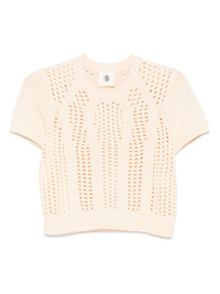 open-knit sweater Highlights - Light beige - Crew neck - Short sleeves - Straight hem - Ribbed trim Imported Composition Organic Cotton 100%