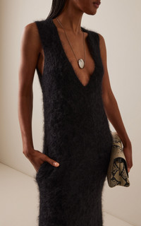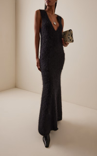 The Copenhagen label’s Fall ’25 collection delivers a welcome balance of fluidity and structure. It’s all about the ebbs and flows with an interplay of meticulous tailoring and graceful, free-flowing silhouettes. Soft long knit dress. PRODUCT DETAILS - Fall '25 - Slip on - Composition: 72% mohair, 26% nylon, 2% spandex - Dry clean only - Imported SIZE & FIT - Our model is wearing a size UK 6 - Model is 5'9.5" with a 32" bust, 24" waist, and 35.5" hip - Designed for a slim fit