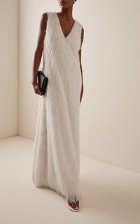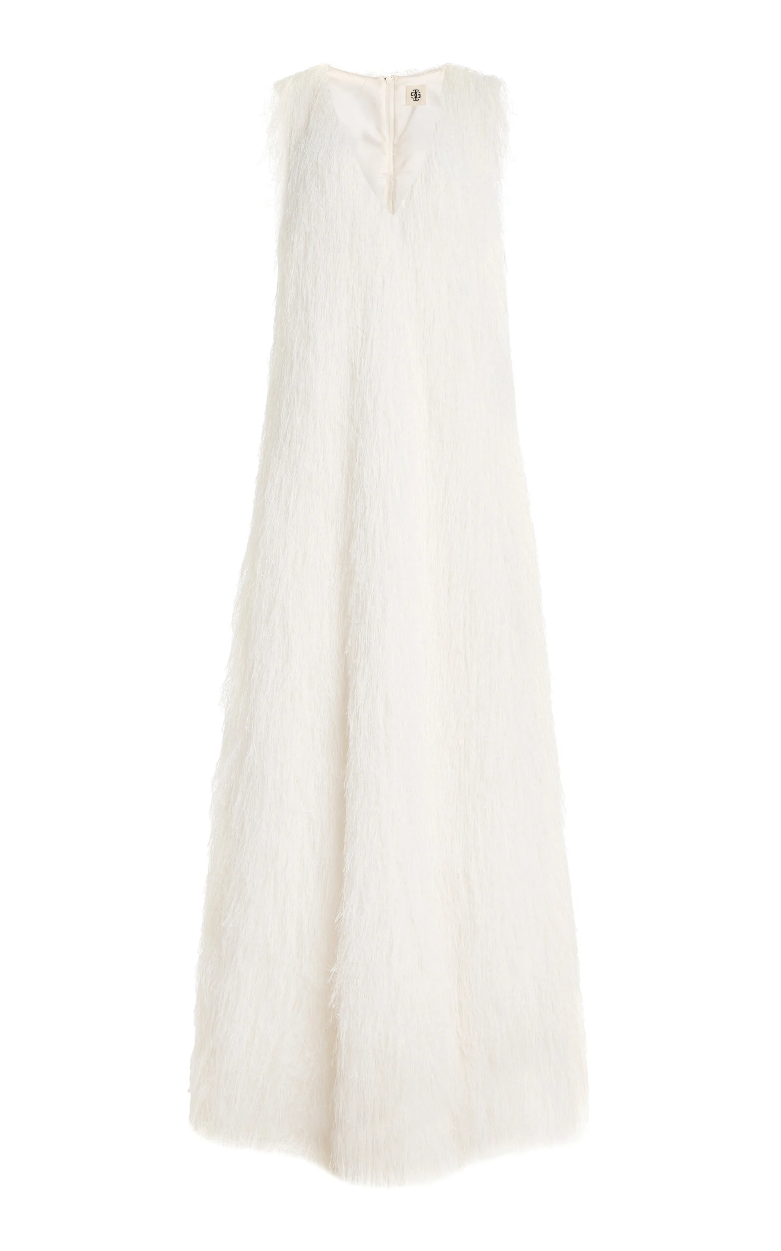 Faux fur gown with V-opening PRODUCT DETAILS - Fall-Winter '25 - Slim fit, deep V neckline and sleeveless, fur detailing throughout, column silhouette maxi - Lined - Composition: Main: 100% Polyester Lining: 55% Polyester 45% Viscose - Zip Closure Through Back - *Dry clean only - Made in China