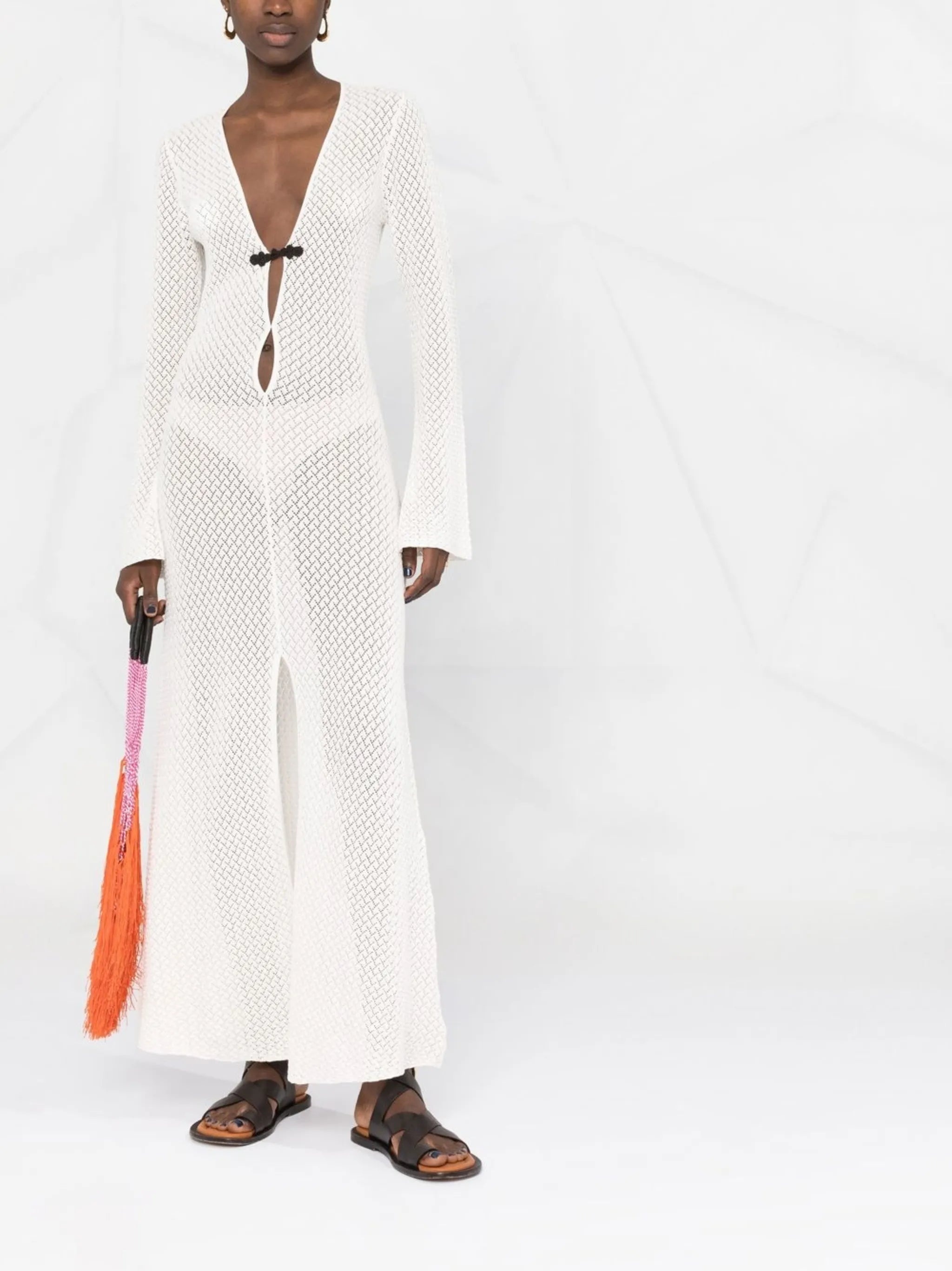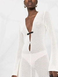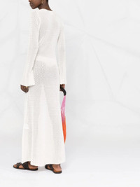 cloud white organic cotton pointelle knit semi-sheer construction front button fastening V-neck front slit long sleeves straight hem ankle-length - Color: WHITE - Made in: China - Designer Style ID: 18148 TANZANIA 001 Composition and care Organic Cotton: 100.0%