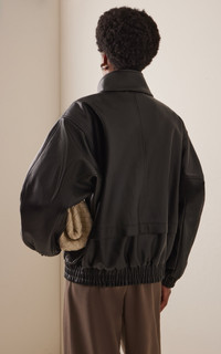 Founded by Sophia Roe and Charlotte Eskildsen, The Garment is inspired by timeless minimalism, crafting their coveted line with a seasonless approach that embraces craftsmanship and versatility over fleeting trends. This modern slant on the classic bomber jacket is constructed with several panels – made in part from recycled leather – to achieve a slouchy, oversized fit with elasticated trims. Dress down your office attire by combining this layer with a crisp shirt and tailored pants. PRODUCT DETAILS - Fall/Winter ‘25 - Concealed zip fastening - Composition: 52% recycled leather, 28% polyurethane, 20% polyester - Dry clean - Imported SIZE & FIT - Our model is wearing a size UK 6 - Model is 5'10" with a 31" bust, 23.5" waist, and 33.5" hip - Designed for moderate coverage