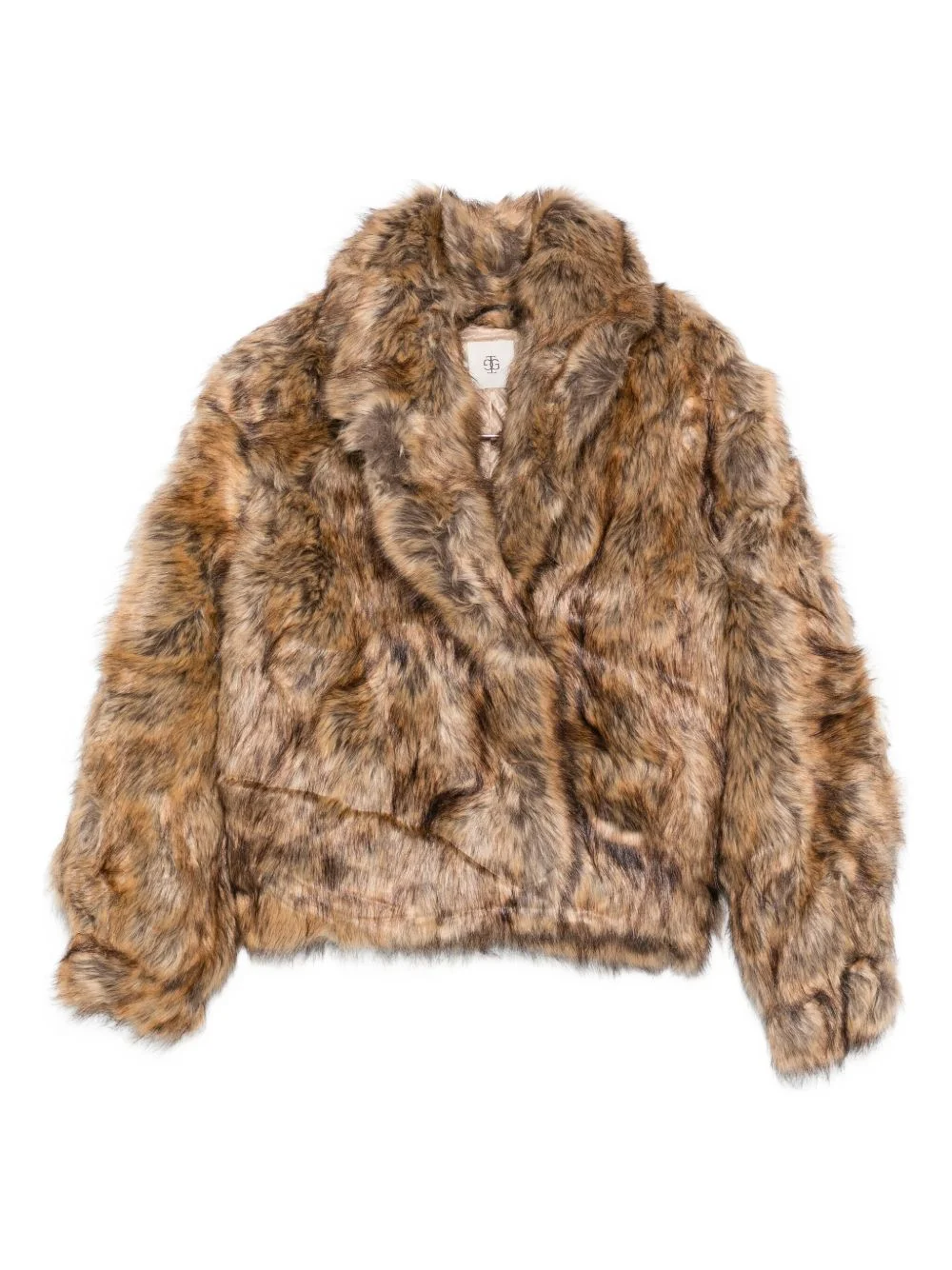 faux-fur coat Highlights - Brown - Wide lapel collar - Long sleeves - Concealed front fastening Imported Composition Acrylic 85%, Modacrylic 15% Washing instructions Read Manufacturer Guidelines
