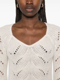 light beige scoop neck split cuffs ribbed cuffs and hem Size & Fit Model Measurements: Height: 1.81 m Bust/Chest: 83.0 cm Hips: 92.0 cm Waist: 61.0 cm Model wears size 6 Fabric and Care Designer Style ID: 21117 Designer Colour: 004 BEIGE Composition: Polyamide 35%, Alpaca 33%, Wool 32% Washing instructions: Hand Wash