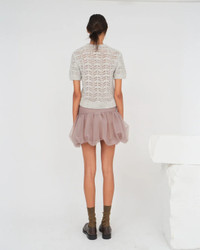 The Verbier Pointelle Mini in Heather Grey Melange by The Garment is a knit t-shirt featuring a pointelle pattern crafted in a luxe blend of alpaca, wool. and polyamide. - 35% Polyamide 33% Alpaca 32% Wool - #21216