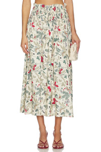 - 100% silk - Made in India - Dry clean only - Unlined - Pull-on styling - Lightweight crepe fabric - Smocked waistband - Skirt measures approx 36" in length - Revolve Style No. GREA-WQ11 - Manufacturer Style No. K123060