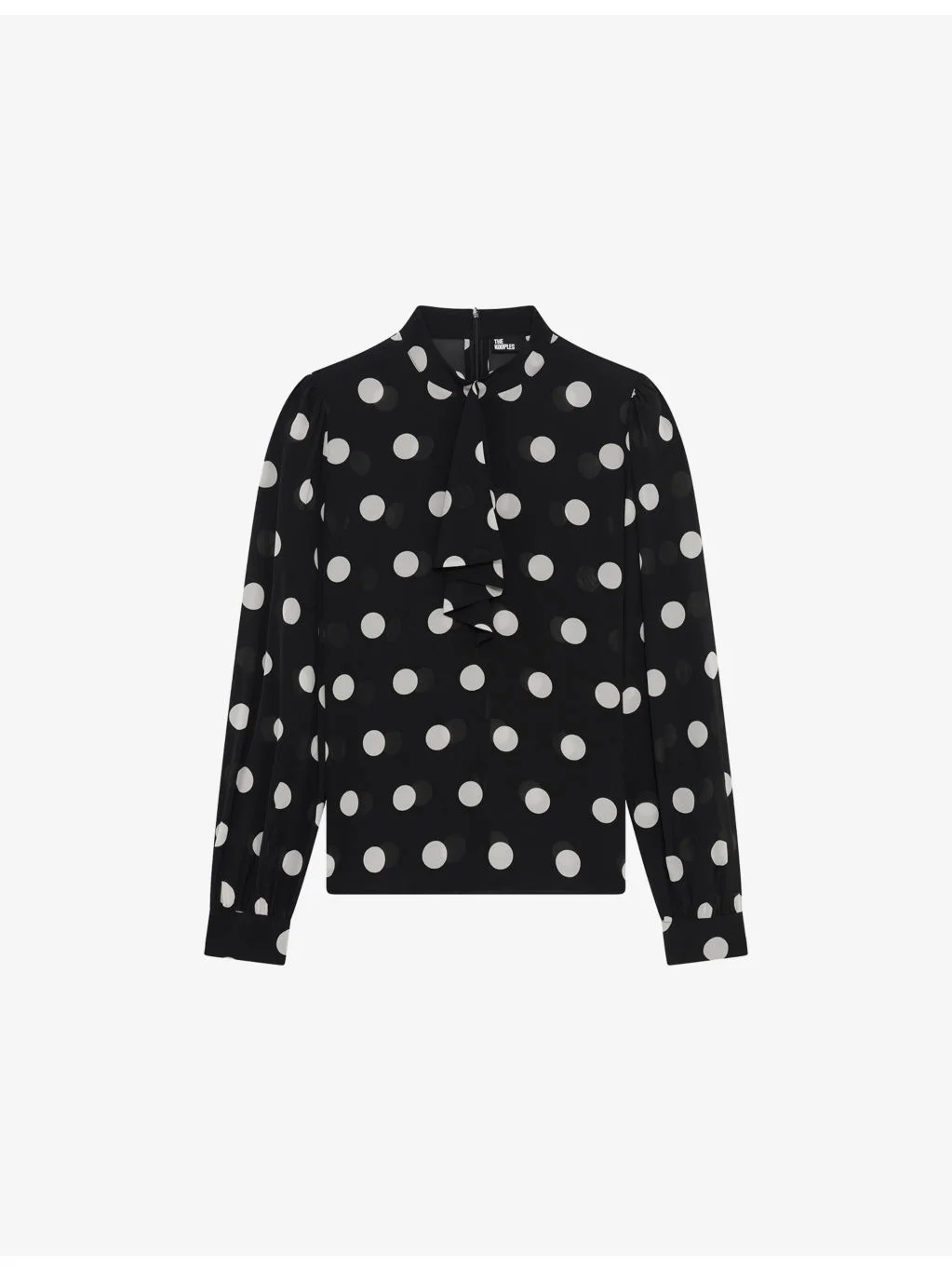 PRODUCT DETAILS - The Kooples silk-blend blouse - 59% viscose, 41% silk - Regular fit, high neck, long sleeves, polka dot pattern - Dry clean - True to size - Model is 5ft 10in/1.78m and wears a size UK 8 - Lightweight, non-stretch Ref: R04561831