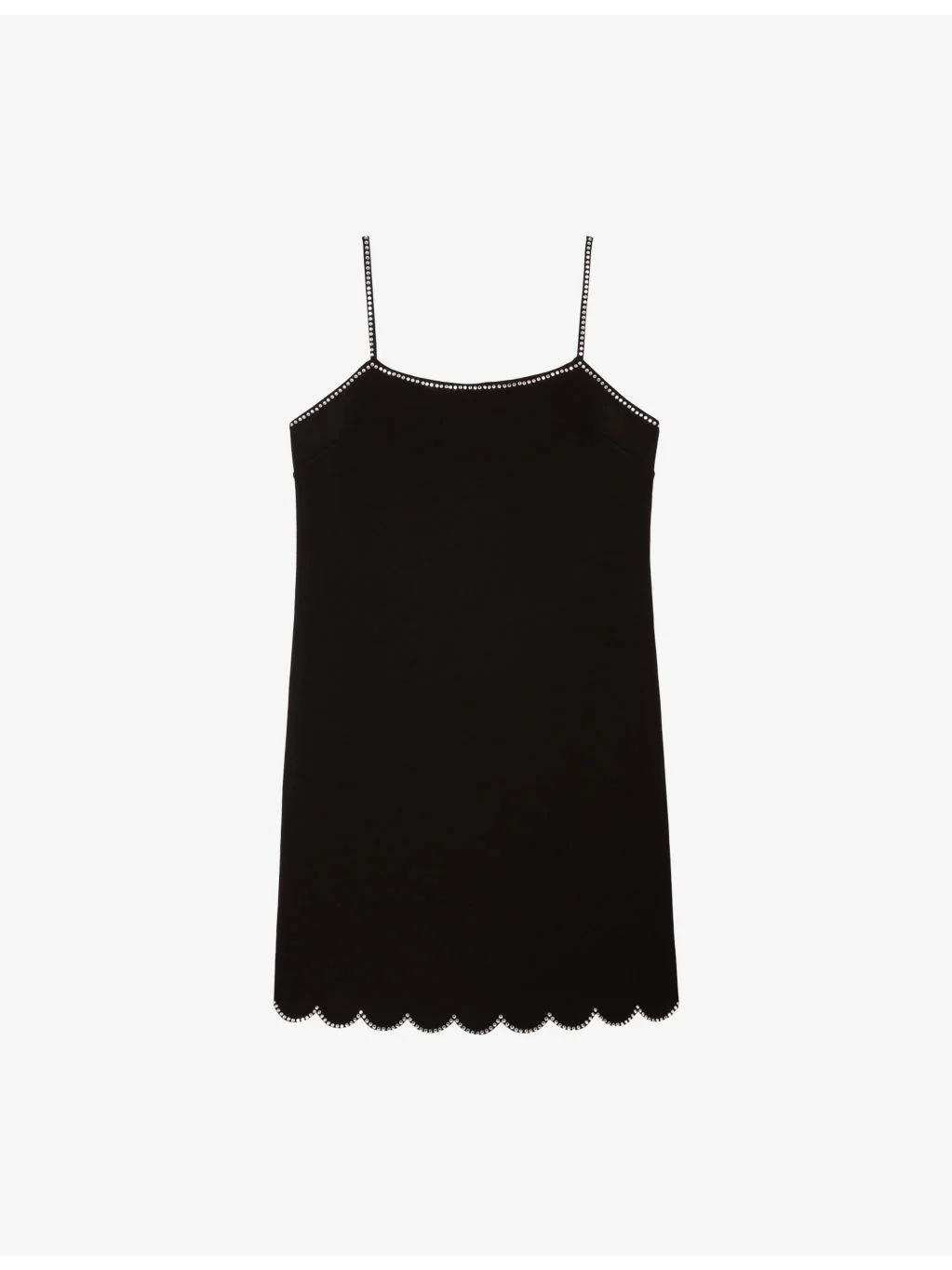PRODUCT DETAILS - The Kooples woven dress - 50% acetate, 50% polyester - Concealed fastening - Regular fit, square neck with jewel embellishment, narrow straps, sleeveless, scalloped embellished hem - Dry clean - True to size - Model is 5ft 9in/1.76m and wears a size UK 8 - Midweight, non-stretch Ref: R04562084