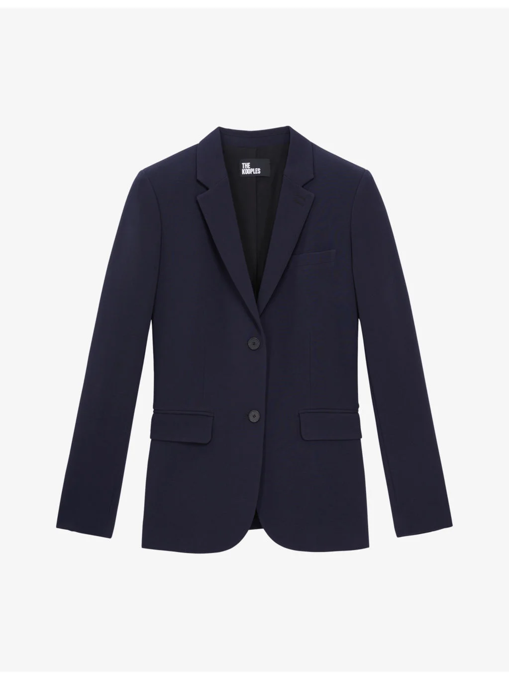 PRODUCT DETAILS - The Kooples stretch-woven blazer - 95% polyester, 5% elastane - Exposed button fastening at front - Thin lapels, welt pocket at the chest, long sleeves, two flap pockets at the side, single-breasted silhouette - Dry clean - True to size - Midweight, slight stretch