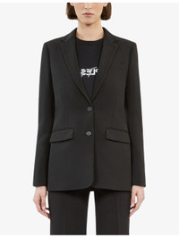 PRODUCT DETAILS - The Kooples stretch-crepe blazer - 95% polyester, 5% elastane; lining 100% viscose - Exposed button fastening at front - Notch lapels, buttonholes at lapels, long sleeves, buttoned cuffs, welt pocket at chest, flap pockets at front, single-vent at back, curved hem - Dry clean - True to size - Model is 5ft 10in/1.78m and wears a size UK 8 - Midweight, slight stretch