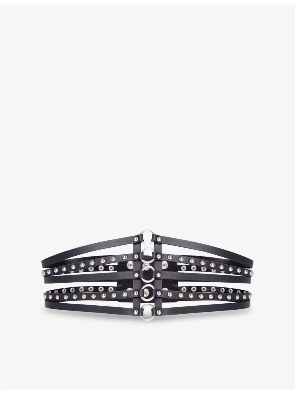 PRODUCT DETAILS - The Kooples leather belt - 100% leather - Popper fastening - Corset style, all-over stud embellishment, silver-tone hardware, multiple strap detail - Specialist leather clean - Width: 11cm