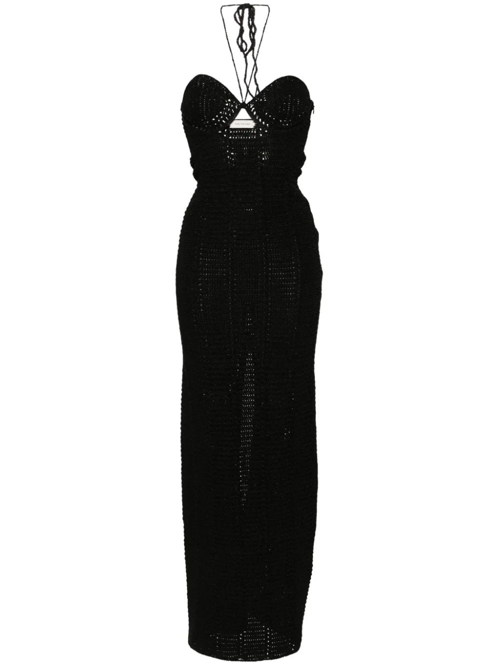 Bergen crochet-knit maxi dress Highlights - Black - Cotton blend - Crochet knit - Built-in underwire bra - Cut-out detailing - Sweetheart neck - Halterneck tie fastening - Concealed side zip fastening - Fitted waistline - Rear slit - Long length - Straight hem - Unlined Imported Composition Cotton 80%, Viscose 20% SIZE & FIT Model measurements Height 5 ft 10 in(1.77 m) Bust/Chest 32.28 in(82 cm) Hips 35.03 in(89 cm) Waist 25.19 in(64 cm) FittingInformation Designed for a close fit throughout The moulded cups offer shape and support Made with a midweight knit, this piece offers some stretch This piece fits true to size – take your usual size