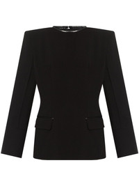 Dalgety top Highlights - Black - Crepe texture - Rear zip fastening - Leather trim - Crew neck - Shoulder pads - Long sleeves - Straight hem Imported Composition Lining: Viscose 65%, Polyamide 35% Outer: Leather 100%, Polyester 63%, Ramie 33%, Spandex/Elastane 4% Washing instructions Specialist Cleaning