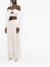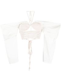 draped-sleeves crochet-knit blouse Highlights - Ivory white - Cotton blend - Crochet knit - Cut-out detailing - Cropped - Rear criss-cross straps - Halterneck tie fastening - Rear tie fastening - Long draped sleeves - Straight hem Imported Composition Outer: Cotton 80%, Viscose 20% SIZE & FIT Model measurements Height 5 ft 10 in(1.79 m) Bust/Chest 31.1 in(79 cm) Hips 35.03 in(89 cm) Waist 24.01 in(61 cm) FittingInformation Designed for a close fit throughout The adjustable drawstring means that you can adjust this piece’s fit to suit your comfort and preference Made with a midweight knit, this piece offers some stretch This piece fits true to size – take your usual size