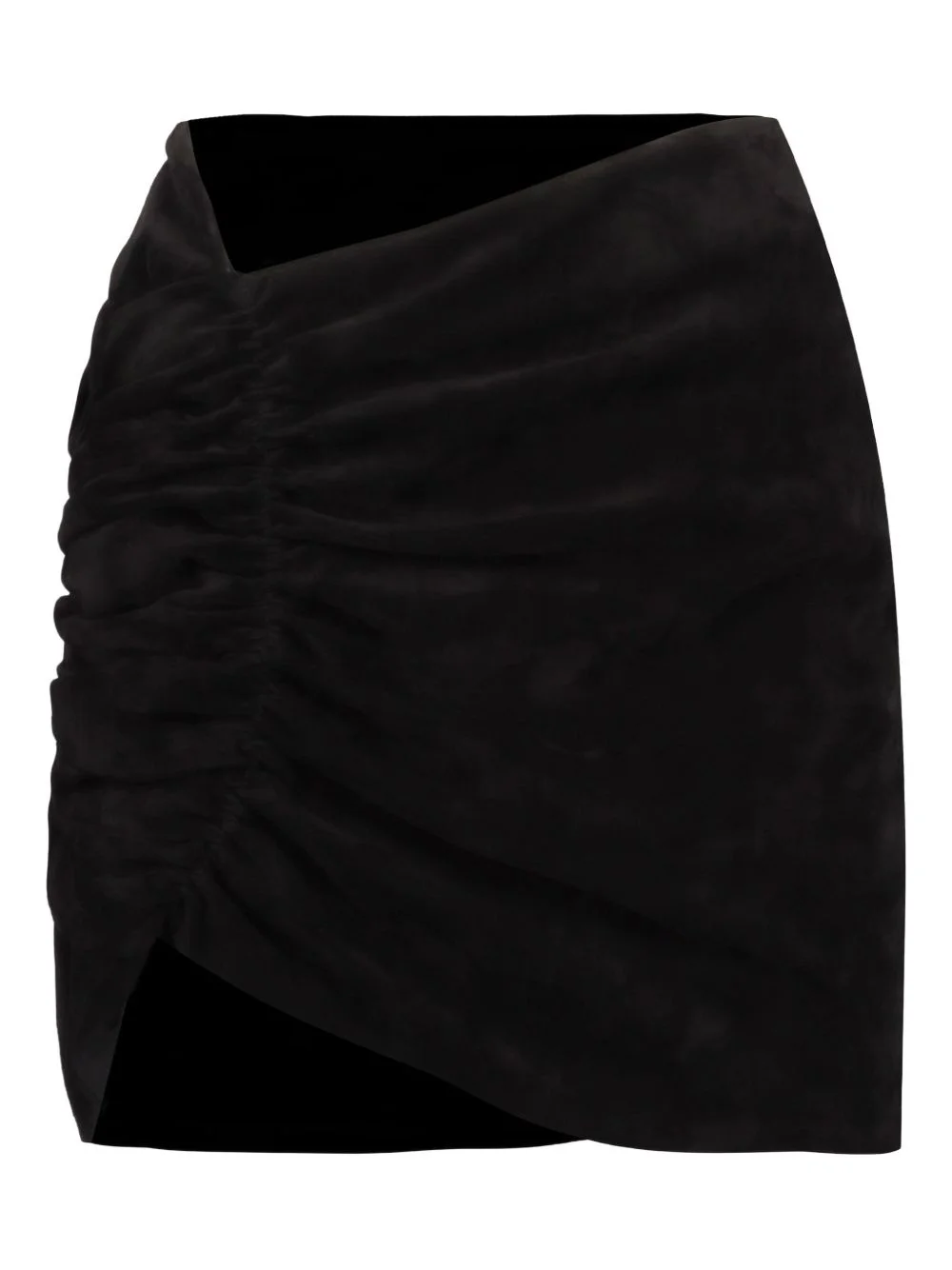 leather short draped skirt Highlights - Black - Leather - Draped front - Gathered detailing - Asymmetrical hem - Concealed zip fastening Imported Composition Leather 100% Washing instructions Specialist Cleaning