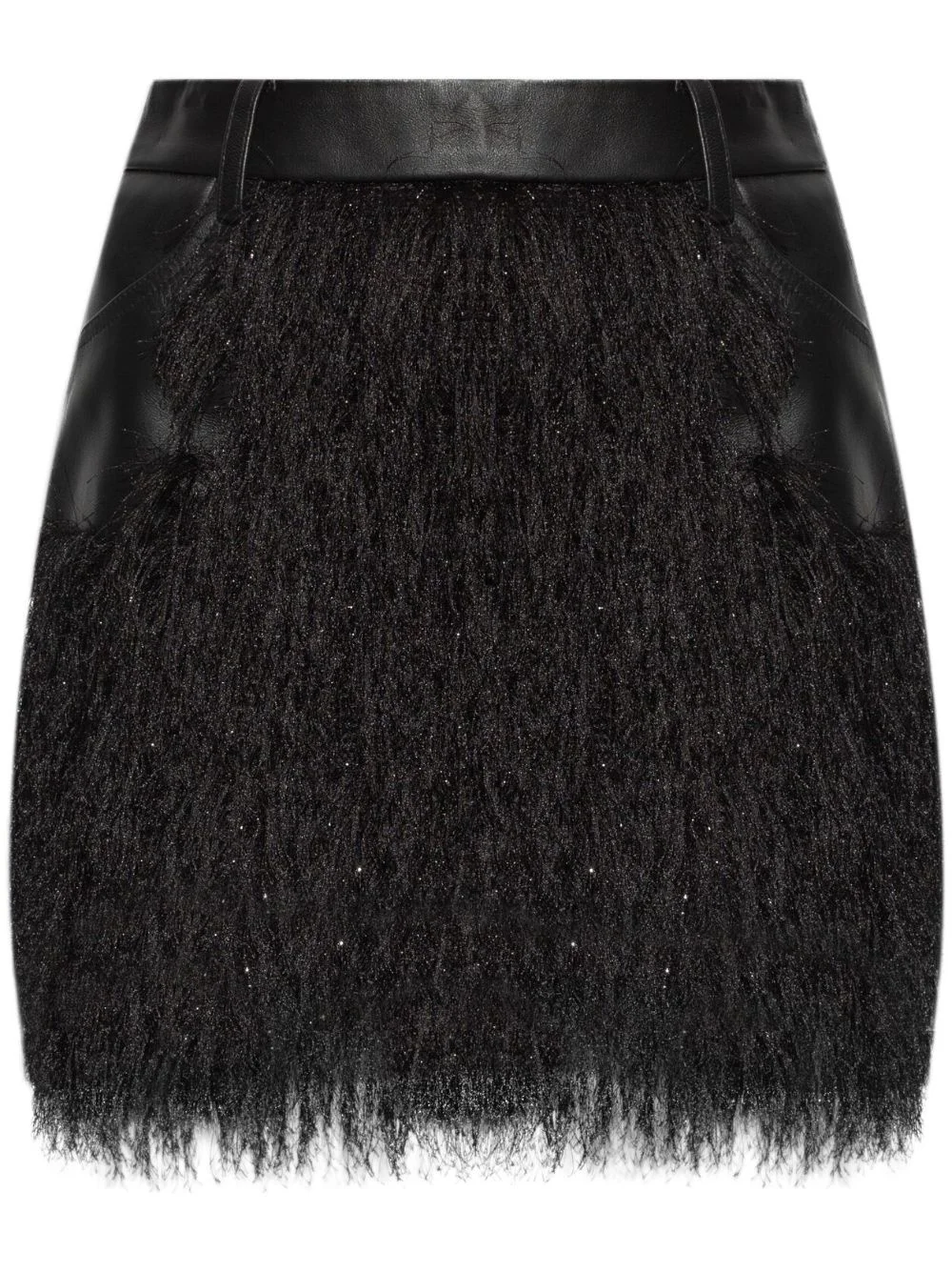 fringed skirt Highlights - Black - Leather - Rear zip fastening - High-rise - Belt loops - Slip pockets to the sides - Dart detailing - Two rear patch pockets - Straight hem - Thigh-length Imported Composition Fabric 100%, Leather 100% Washing instructions Specialist Cleaning