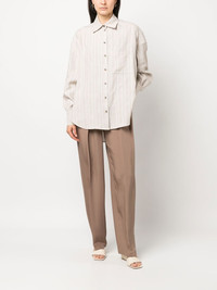 'Nausa' high-waist pants brown silk pleat detailing high waist concealed fly and button fastening belt loops two front pouch pockets wide leg Imported Composition Lining: Viscose 55%, Polyamide 35%, Silk 10% Outer: Silk 100% SIZE & FIT Model measurements Height 5 ft 11 in(1.8 m) Bust/Chest 33.07 in(84 cm) Hips 37.4 in(95 cm) Waist 25.19 in(64 cm) FittingInformation This piece fits true to size. We recommend you get your regular size Designed to be fitted at the waist and hips, loose over the leg Made with a mid-weight non-stretch fabric Washing instructions Dry Clean Only