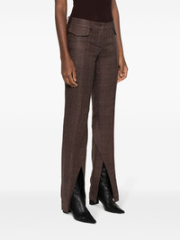 Newport pleated flared trousers Highlights - Cedar brown - Silk - Flared design - Pleat detailing - Mid-rise - Concealed front fastening - Two front flap pockets - Belt loops - Front slits - Two rear welt pockets Imported Composition Lining: Viscose 100% Outer: Silk 100% SIZE & FIT Model measurements Height 5 ft 10 in(1.78 m) Bust/Chest 31.49 in(80 cm) Hips 37 in(94 cm) Waist 23.62 in(60 cm) FittingInformation Designed for a slim fit, these trousers offer a close fit at the waist, allowing a comfortable close fit and some movement over the leg Made from a midweight non-stretch fabric This piece fits true to size – take your usual size