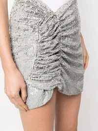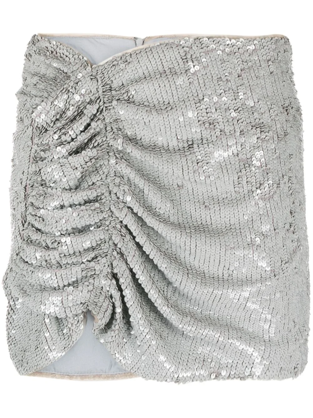 ruched-detail sequined miniskirt Highlights - Cool grey - Sequin design - Ruched detailing - Mid-rise - Notched waistband - Rear zip fastening - Curved hem - Thigh-length Imported Composition Outer: Polyester 100%, Viscose 80%, Elastane 20% Lining: Viscose 65%, Polyamide 35% SIZE & FIT Model measurements Height 5 ft 10 in(1.78 m) Bust/Chest 31.49 in(80 cm) Hips 36.22 in(92 cm) Waist 25.59 in(65 cm) FittingInformation This mini-length skirt is intended to be worn high on the waist Made from a midweight non-stretch fabric This piece fits true to size – take your usual size