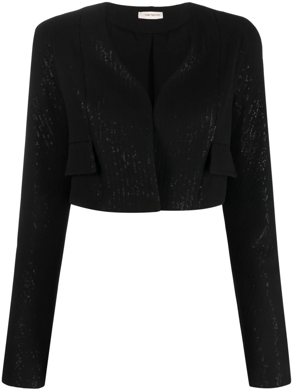 Terras sequinned cropped blazer This blazer from The Mannei lends a touch of subtle sparkle.Cut from black silk with structured shoulders that nod to retro power suiting, it's decorated with scores of light-catching sequins. Imported Composition Lining: Viscose 100% Outer: Silk 100%, Nylon 94%, Spandex/Elastane 6% SIZE & FIT Model measurements Height 5 ft 10 in(1.79 m) Bust/Chest 31.49 in(80 cm) Hips 35.03 in(89 cm) Waist 23.62 in(60 cm) FittingInformation This piece fits true to size. We recommend you get your regular size Cut for a slim fit Made with a mid-weight fabric Washing instructions Machine Wash