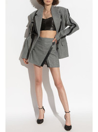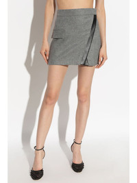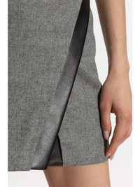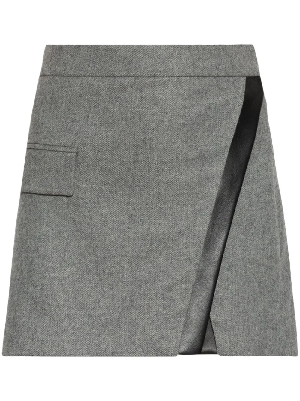 Barren mini skirt Highlights - Grey - Wool blend - Leather trim - Concealed side fastening - High-waisted - Side flap pocket - Wraparound style - Thigh-length Imported Composition Leather 100%, Wool 48%, Polyester 38%, Viscose 12%, Elastane 2% Washing instructions Specialist Cleaning