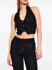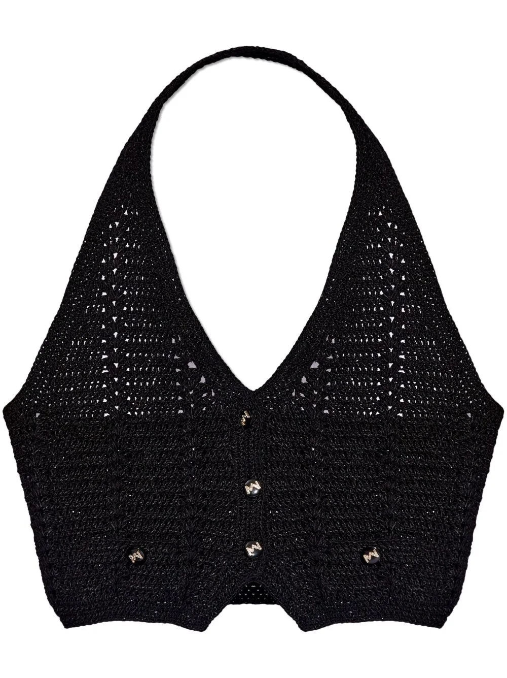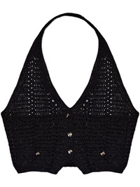 Tya crochet vest Highlights - Black - Cotton blend - Crochet - Halterneck - Front button fastening - Low back - Asymmetric hem - Cropped Imported Composition Cotton 80%, Viscose 20%